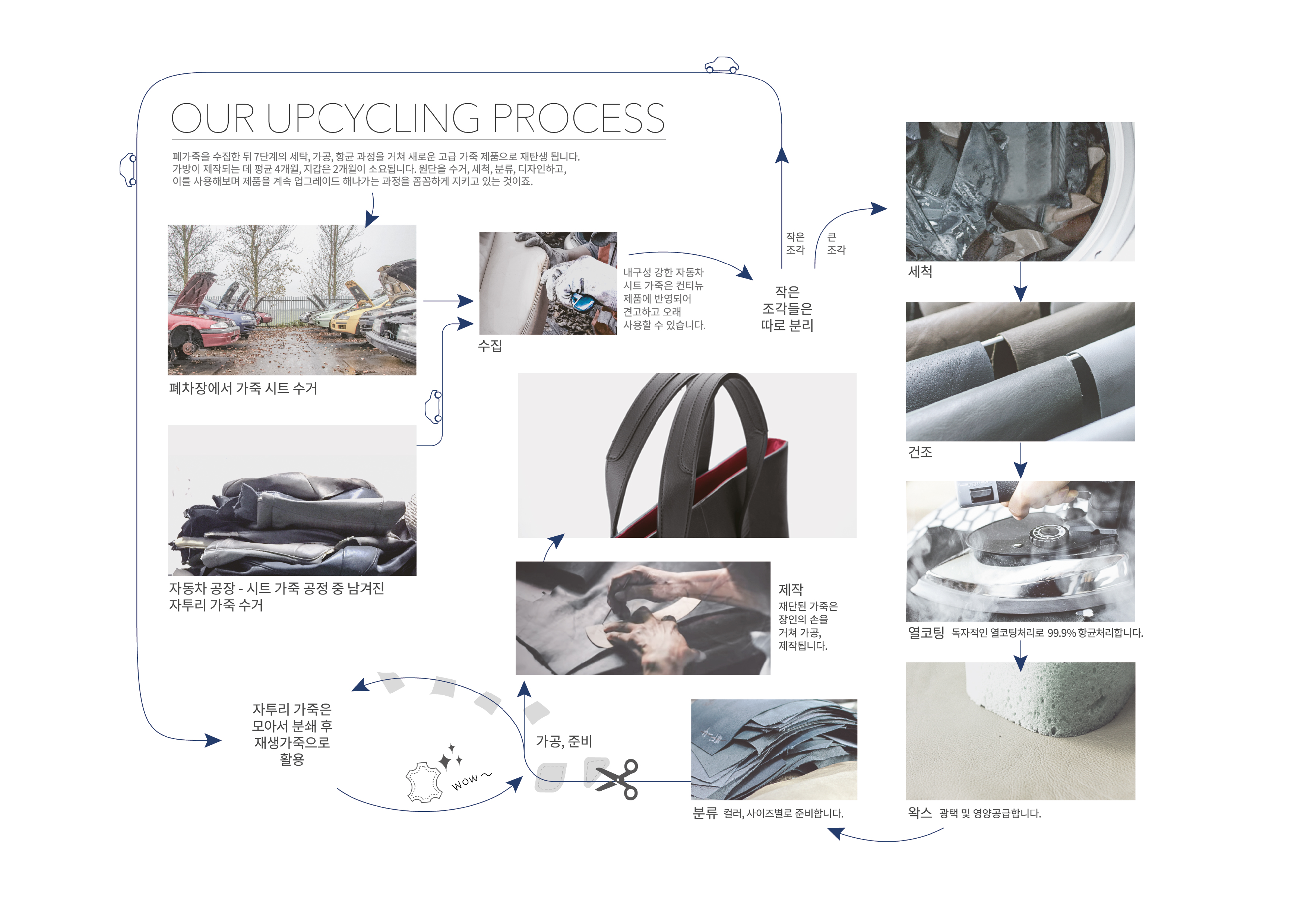 - 자동차 시트에 사용된 최고급 가죽을 업사이클링 한 친환경 제품