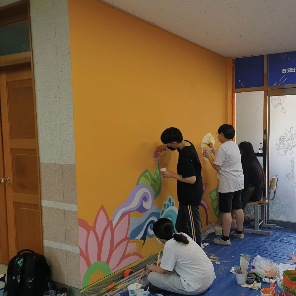 벽화를 올릴 장소에 대한 시안작업을 함께 만들어가며 아이들과 소통하는 벽화수업