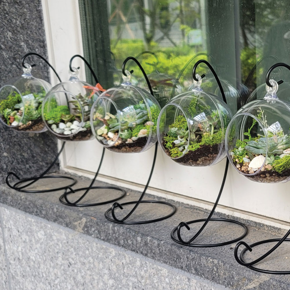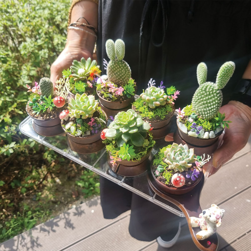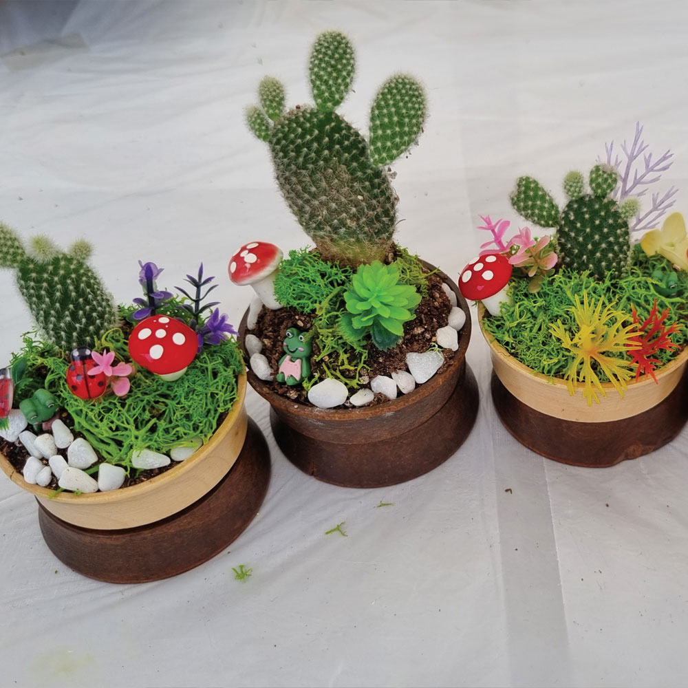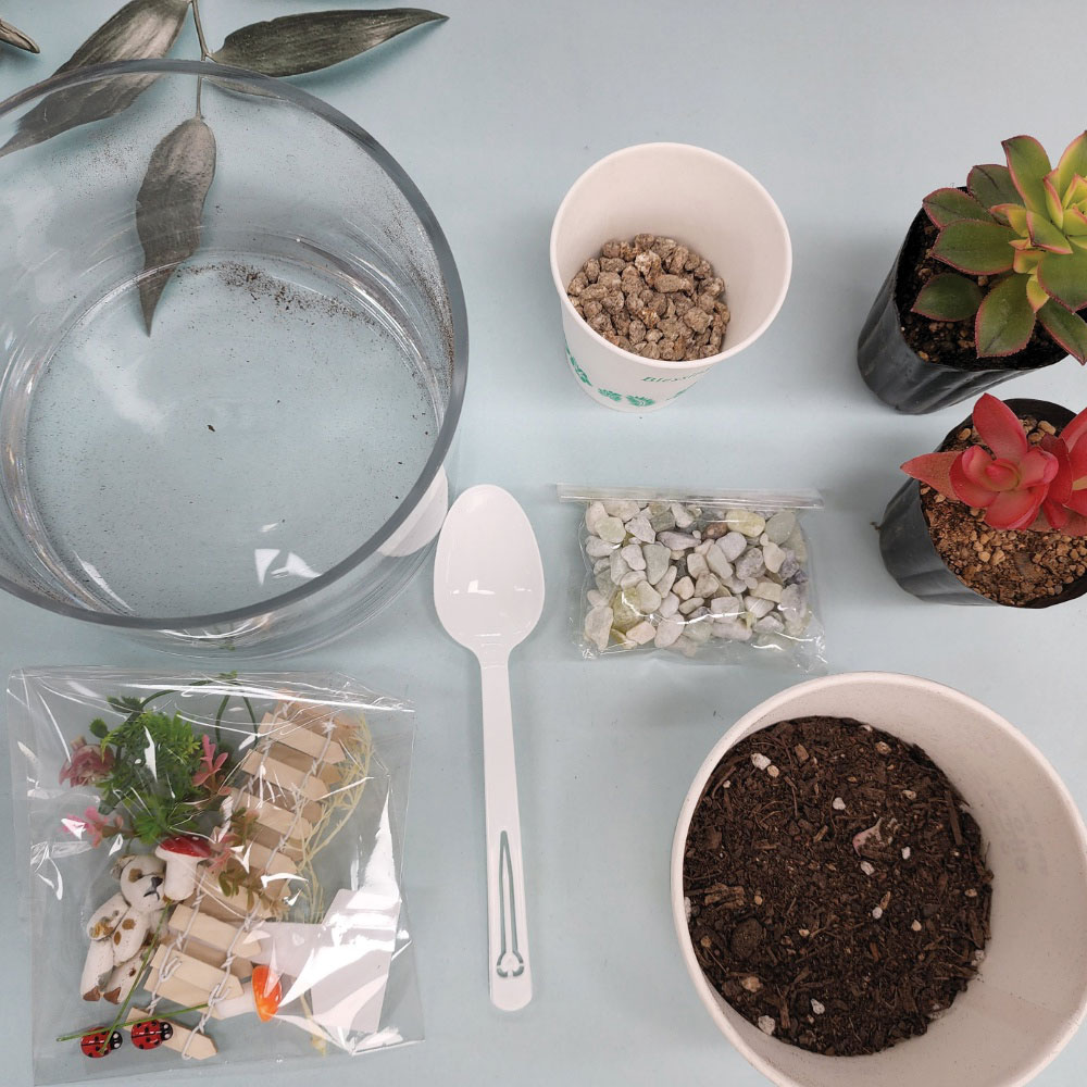 - 식물을 이용하여 여러 가지 재료들로 인테리어 소품을 만드는 직업체험 - 미니다육화분만들기- 행잉테라리움- 대나무테라리움