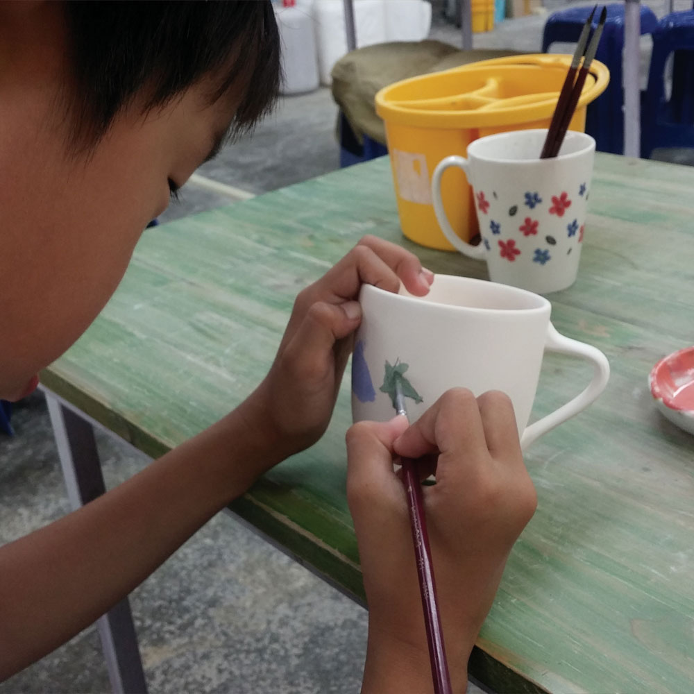 ➀ 초벌구이 된 도자기에 도자기 전용물감을 사용하여 그림을 그린 후 가마에서 재벌구이를 통해 얻을 수 있으며, 실생활에 이용할 수 있는 공예 프로그램 ➁ 체험시간: 1교시용 ➂ 체험인원: 20명이상~